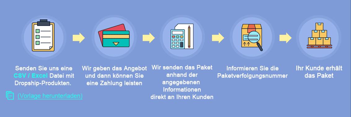 Wenn Sie kein Problem haben, senden Sie uns bitte eine CSV / Excel Datei mit Dropship-Produkten.